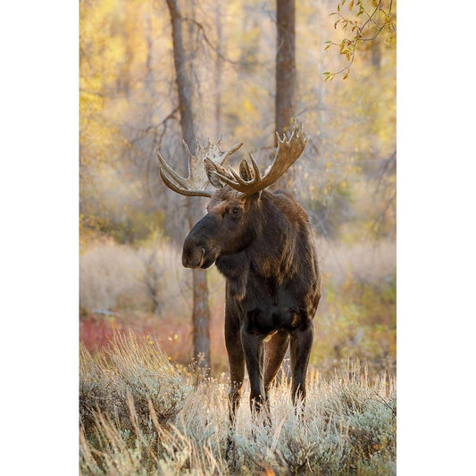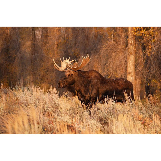 Bull moose in autumn-Grand Teton National Park-Wyoming Gold Ornate Wood Framed Art Print with Double Matting by Jones, Adam