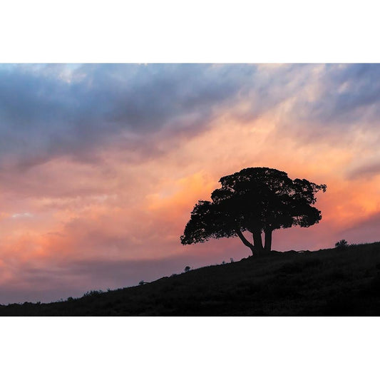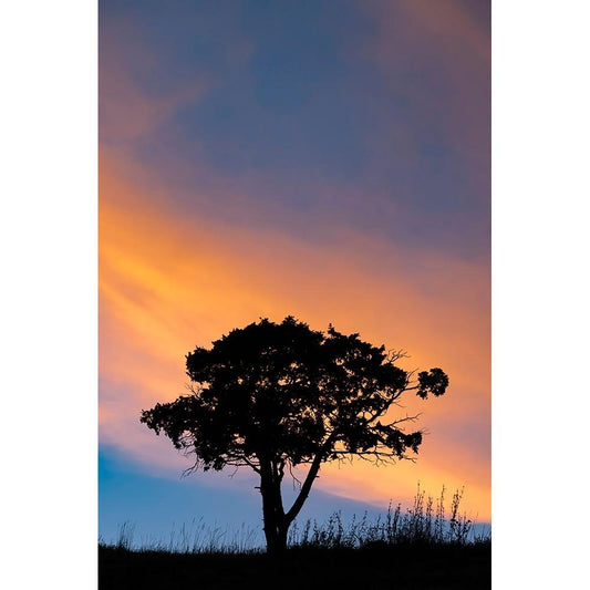 Single tree silhouetted at sunrise-Yellowstone National Park-Wyoming Gold Ornate Wood Framed Art Print with Double Matting by Jones, Adam