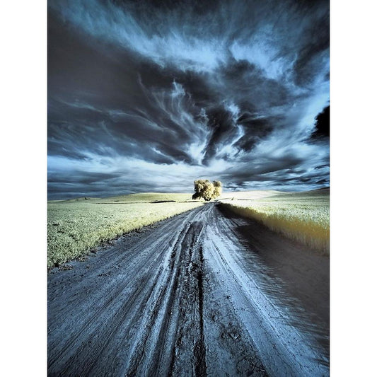 USA-Washington State-Palouse Infrared of lone tree along side country road Gold Ornate Wood Framed Art Print with Double Matting by Eggers, Terry