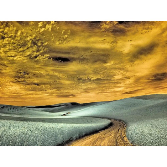 USA-Washington State-Palouse Infrared of rolling hills of crops and clouds Gold Ornate Wood Framed Art Print with Double Matting by Eggers, Terry