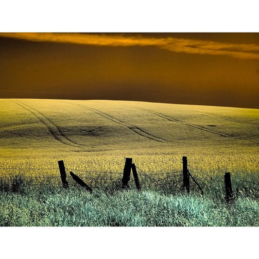 USA-Washington State-Palouse region-Fence and field of wheat Gold Ornate Wood Framed Art Print with Double Matting by Eggers, Terry