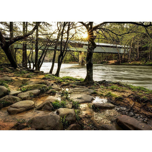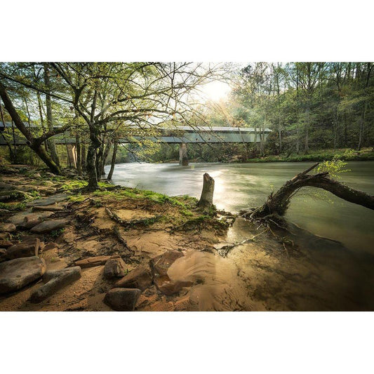 Covered Bridge Panorama Gold Ornate Wood Framed Art Print with Double Matting by Head, Danny
