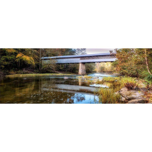 Autumn Bridge Panorama Gold Ornate Wood Framed Art Print with Double Matting by Head, Danny