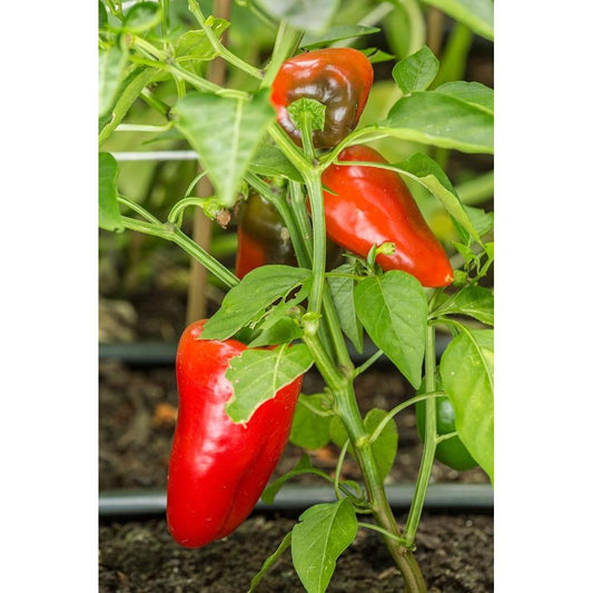 Issaquah-Washington State-USA Bellafina red sweet bell pepper plant growing Gold Ornate Wood Framed Art Print with Double Matting by Horton, Janet