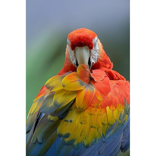 Scarlet Macaw Preening II Gold Ornate Wood Framed Art Print with Double Matting by Fitzharris, Tim