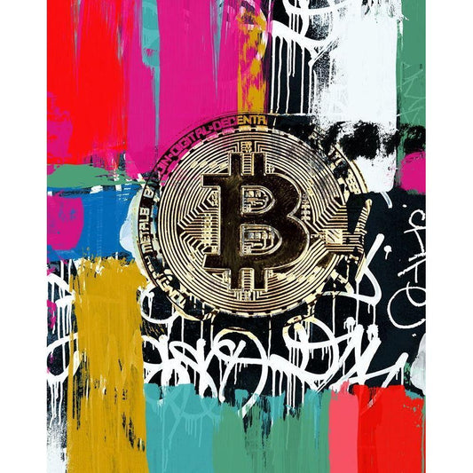 Bitcoin Graffiti Art VII Gold Ornate Wood Framed Art Print with Double Matting by Orlov, Irena