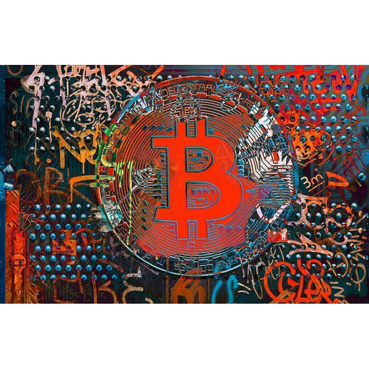 Crypto Currency Bitcoin Graffiti I Gold Ornate Wood Framed Art Print with Double Matting by Orlov, Irena