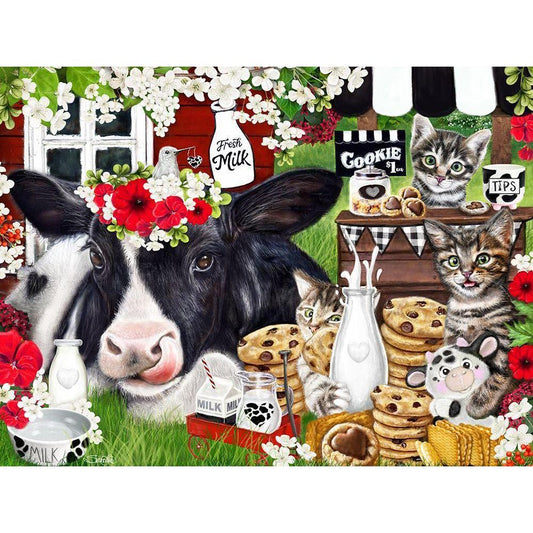 Cookies n Milk Cow and Kitties Gold Ornate Wood Framed Art Print with Double Matting by Sheena Pike Art