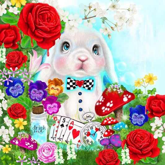 The White Rabbit Gold Ornate Wood Framed Art Print with Double Matting by Sheena Pike Art