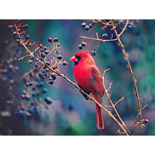 Cardinal and Berries Gold Ornate Wood Framed Art Print with Double Matting by Alpenglow Workshop