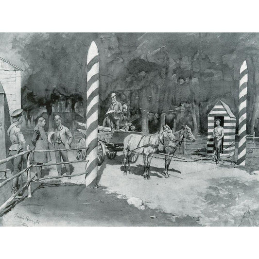 Frontier Guard and Custom House-Sketch Gold Ornate Wood Framed Art Print with Double Matting by Remington, Frederic