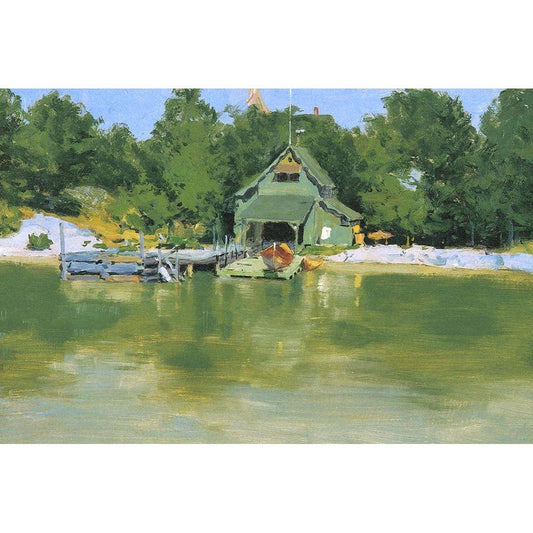Remingtons Boat House at Inglenuck Gold Ornate Wood Framed Art Print with Double Matting by Remington, Frederic