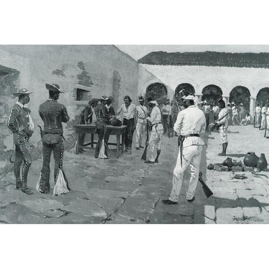 The Mier Expedition-Sketch Gold Ornate Wood Framed Art Print with Double Matting by Remington, Frederic