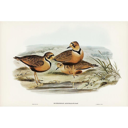 Australian Dottrel-Eudromias Australis Gold Ornate Wood Framed Art Print with Double Matting by Gould, John