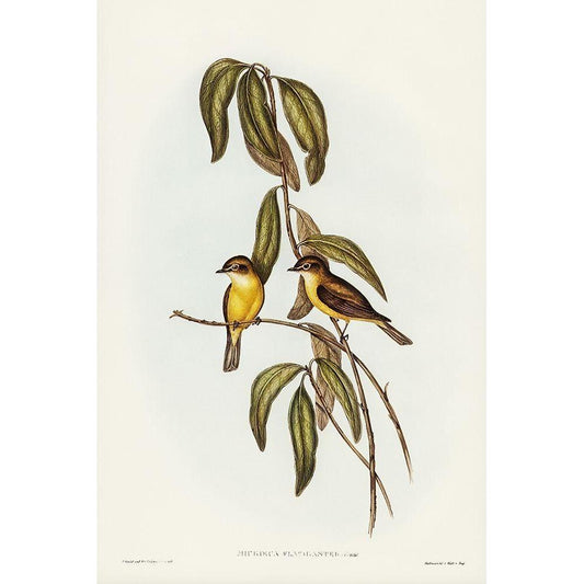 Yellow-bellied flycatcher-Microeca flavigaster Gold Ornate Wood Framed Art Print with Double Matting by Gould, John