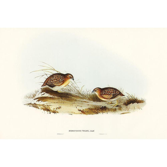Swift-flying Hemipode-Hemipodius velox Gold Ornate Wood Framed Art Print with Double Matting by Gould, John
