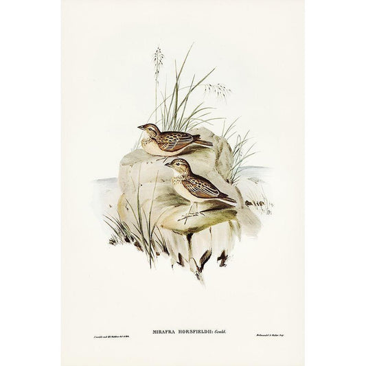 Horsfield’s Mirafra-Mirafra Horsfieldii Gold Ornate Wood Framed Art Print with Double Matting by Gould, John