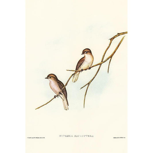 Great-winged Flycatcher-Microeca macroptera Gold Ornate Wood Framed Art Print with Double Matting by Gould, John