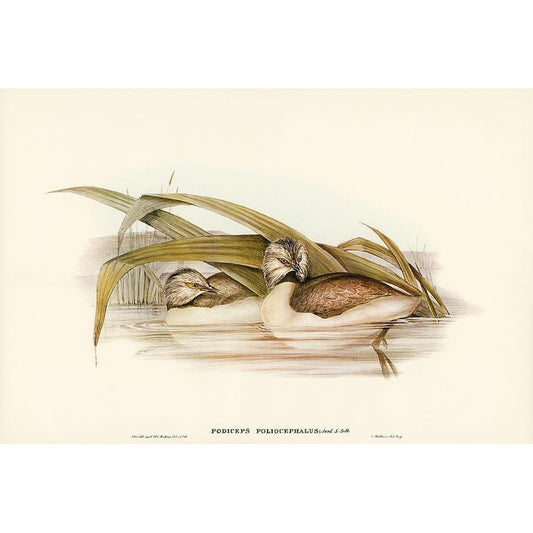 Hoary-headed Grebe-Podiceps poliocephalus Gold Ornate Wood Framed Art Print with Double Matting by Gould, John