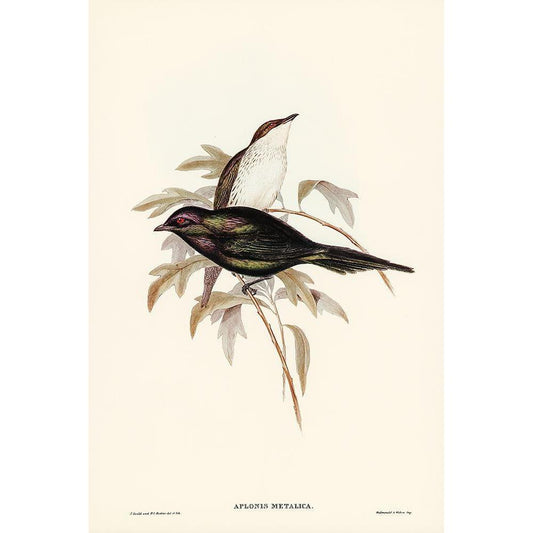 Shining starling-Aplonis metallica Gold Ornate Wood Framed Art Print with Double Matting by Gould, John