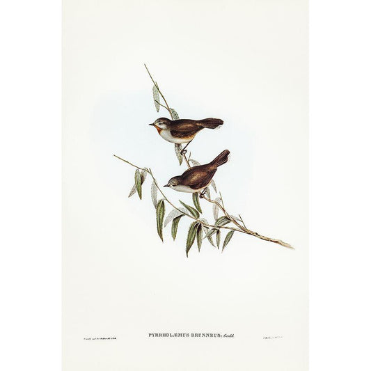 Brown Red-throat-Pyrrholaemus brunneus Gold Ornate Wood Framed Art Print with Double Matting by Gould, John