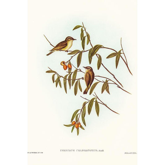 Green-backed Gerygone-Gerygone chloronotus Gold Ornate Wood Framed Art Print with Double Matting by Gould, John