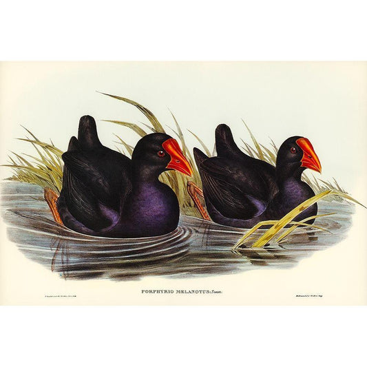 Black-backed Porphyrio-Porphyrio melanotus Gold Ornate Wood Framed Art Print with Double Matting by Gould, John