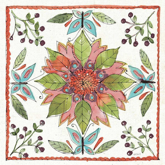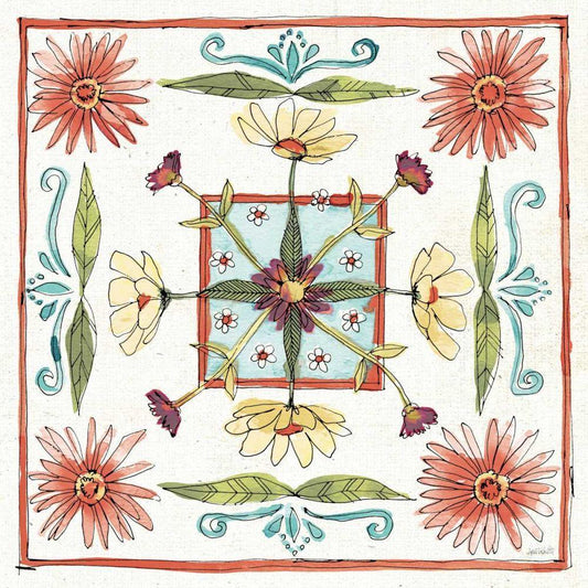 Floral Fiesta Tile II Gold Ornate Wood Framed Art Print with Double Matting by Marshall, Laura