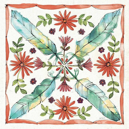 Floral Fiesta Tile I Gold Ornate Wood Framed Art Print with Double Matting by Marshall, Laura