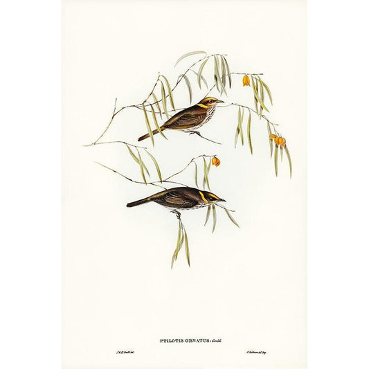 Graceful Honey-eater-Ptilotis ornatus Gold Ornate Wood Framed Art Print with Double Matting by Gould, John