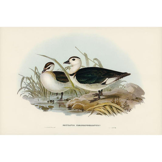 Pygmy Goose-Nettapus Coromandelianus Gold Ornate Wood Framed Art Print with Double Matting by Gould, John