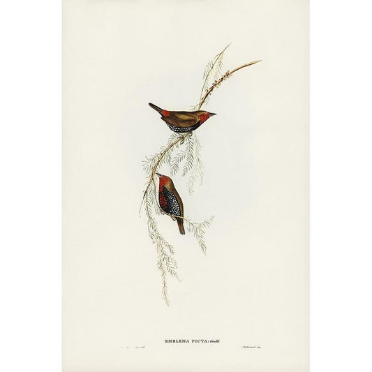Painted Finch-Emblema picta Gold Ornate Wood Framed Art Print with Double Matting by Gould, John