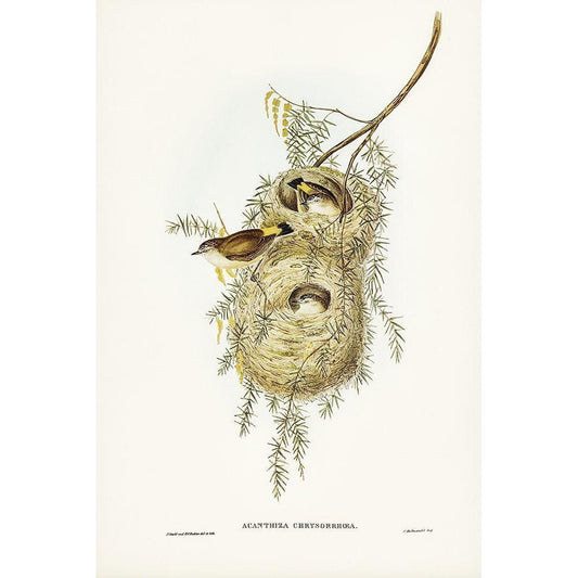 Yellow-rumped Acanthiza-Acanthiza chrysorrhoea Gold Ornate Wood Framed Art Print with Double Matting by Gould, John