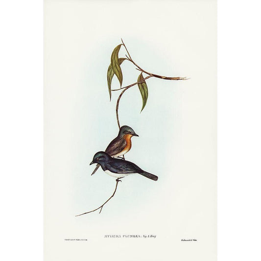 Plumbeous Flycatcher-Myiagra plumbea Gold Ornate Wood Framed Art Print with Double Matting by Gould, John