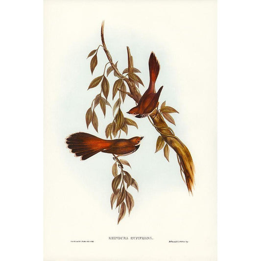 Rufous-fronted Fantail-Rhipidura rufifrons Gold Ornate Wood Framed Art Print with Double Matting by Gould, John