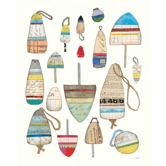 Lobster Buoys on White Gold Ornate Wood Framed Art Print with Double Matting by Prahl, Courtney