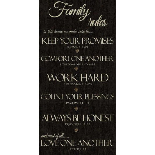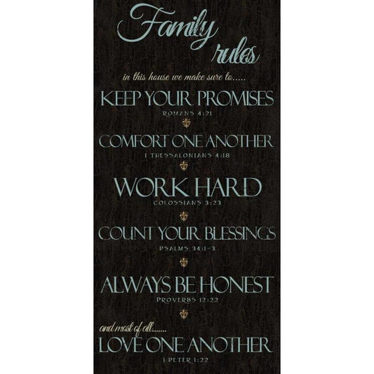 FAMILY RULES SCRIPTURES Black Modern Wood Framed Art Print with Double Matting by Greene, Taylor