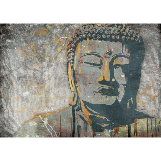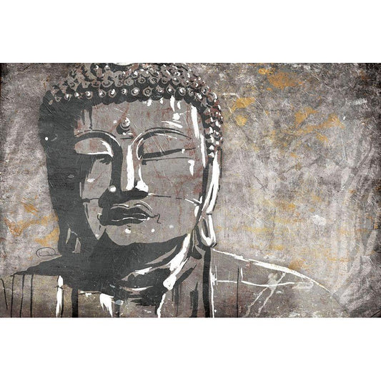 Nuetral Buddha Black Modern Wood Framed Art Print with Double Matting by OnRei