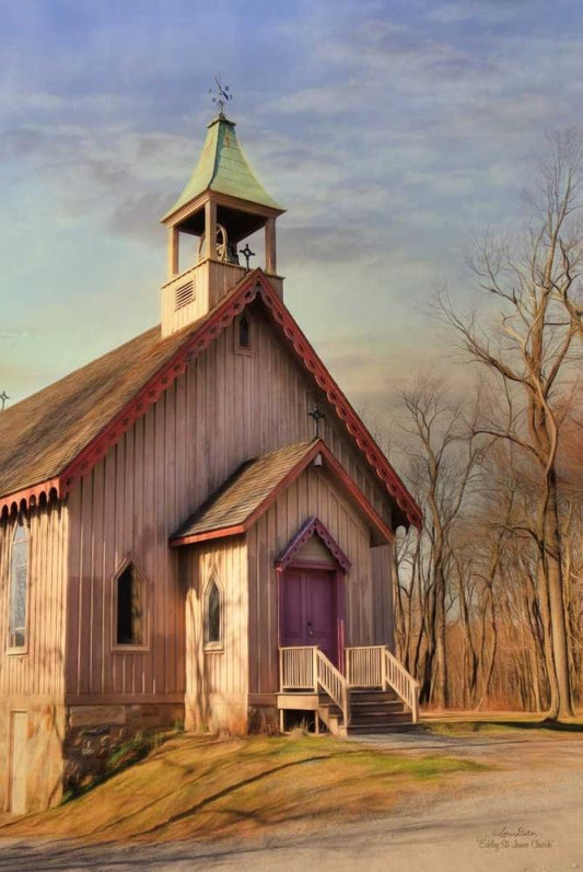 Eckley St. James Church White Modern Wood Framed Art Print with Double Matting by Deiter, Lori