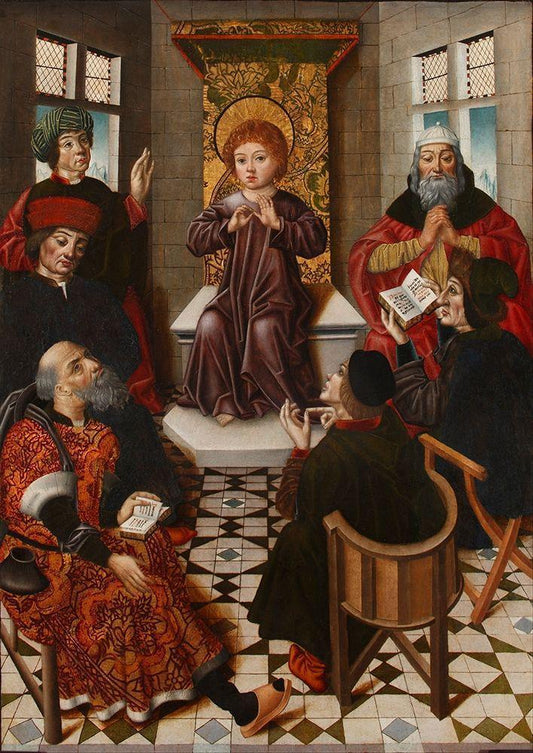 Christ child among doctors White Modern Wood Framed Art Print with Double Matting by Cruz, Diego de la