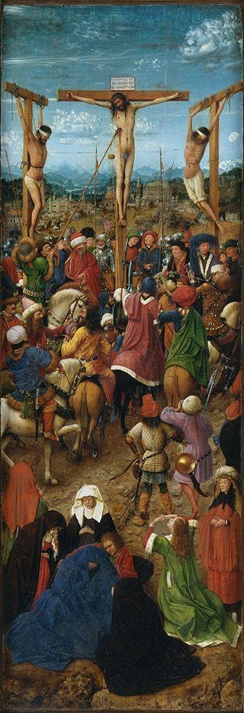 Crucifixion and Last Judgement diptych, left panel White Modern Wood Framed Art Print with Double Matting by van Eyck, Jan