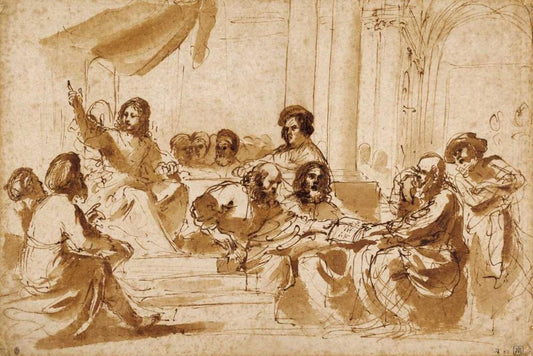Christ Preaching in the Temple White Modern Wood Framed Art Print with Double Matting by Barbieri, Giovanni Francesco