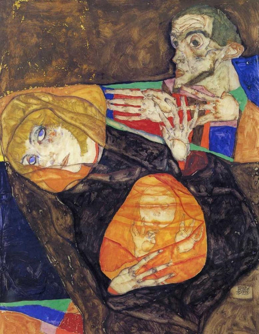 Holy Family White Modern Wood Framed Art Print with Double Matting by Schiele, Egon