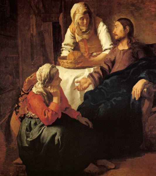 Christ In The House Of Mary And Martha White Modern Wood Framed Art Print with Double Matting by Vermeer, Johannes