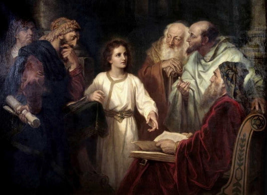 Christ in the Temple at 12 White Modern Wood Framed Art Print with Double Matting by Hofmann, Heinrich