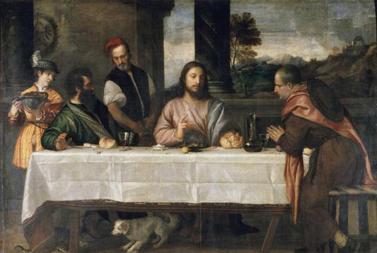 Supper at Emmaus White Modern Wood Framed Art Print with Double Matting by Titian