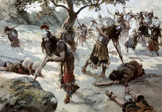 Saul Falls Upon His Sword White Modern Wood Framed Art Print with Double Matting by Tissot, James Jacques