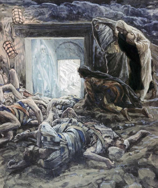Mary Magdalene and The Holy Women at The Tomb White Modern Wood Framed Art Print with Double Matting by Tissot, James Jacques