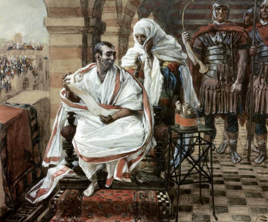 Pilate Washes His Hands White Modern Wood Framed Art Print with Double Matting by Tissot, James Jacques