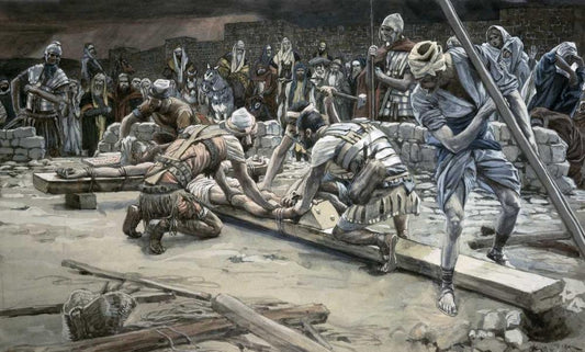 Nailing The Feet White Modern Wood Framed Art Print with Double Matting by Tissot, James Jacques